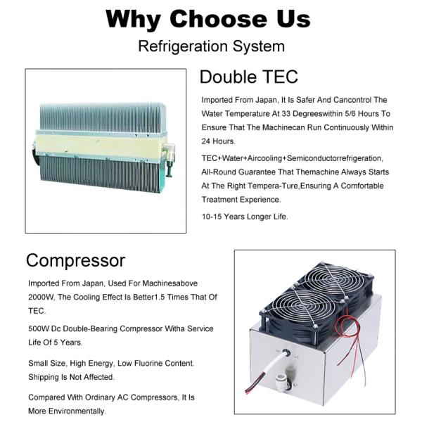 | Cooling system | Air+water + Semiconductor refrigeration +TEC condenser |